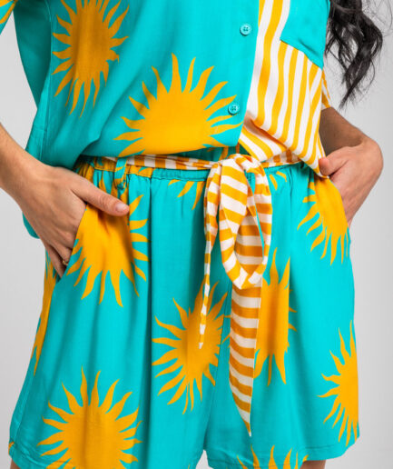 SHORT LAZADA TURQUESA Y SOLES AMARILLOS – OH SOLE MÍO