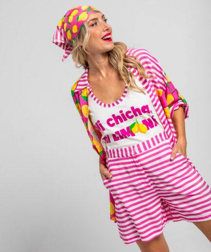 € 34,99 (IVA inc.)SHORT SASTRE DE RAYAS BLANCAS Y ROSAS – LIMONCELLO