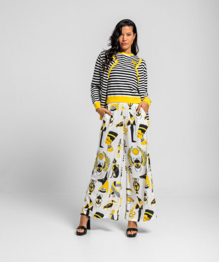 € 44,90 (IVA inc.)TOP EN PUNTO FINO DE RAYAS BLANCAS Y NEGRAS CON PALMERA – LA FARAONA