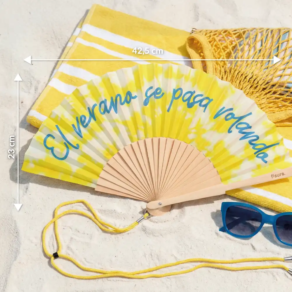 Si tienes claro que en cuanto parpadeas el verano ya ha pasado, este abanico con mensaje “el verano se pasa volando” ✈️ es para ti. ¡Ábrelo y refréscate mientras no dejas ni un plan pendiente y exprimes cada rayo de sol y cada baño en el bar como si fuera el último!
