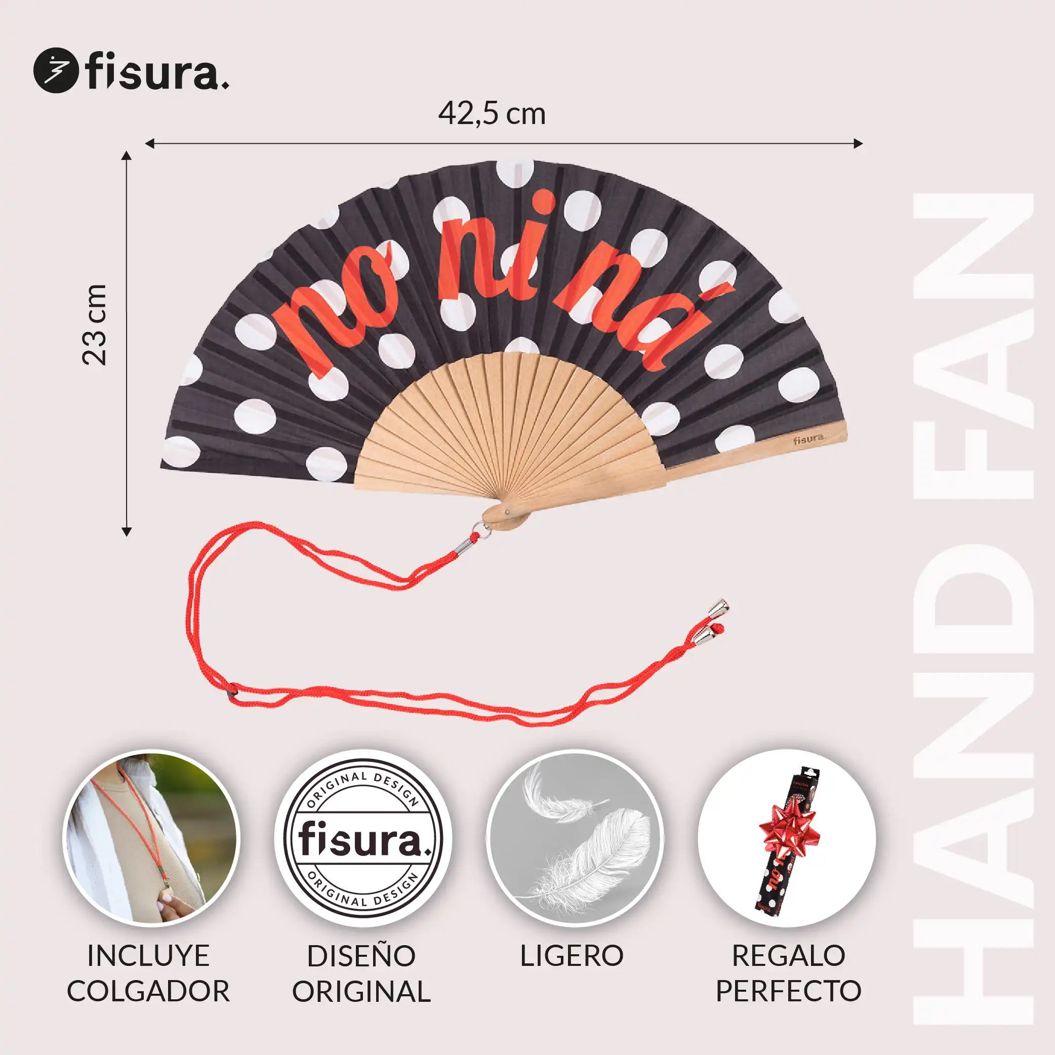 Con su mensaje “no ni ná”, este abanico flamenco no deja lugar a dudas: llevas el salero y el arte por bandera💃. Además, el abanico de lunares en blanco y negro le dará un toque flamenco a tus looks. ¡Irás derrochando duende y frescura allá donde vayas!
