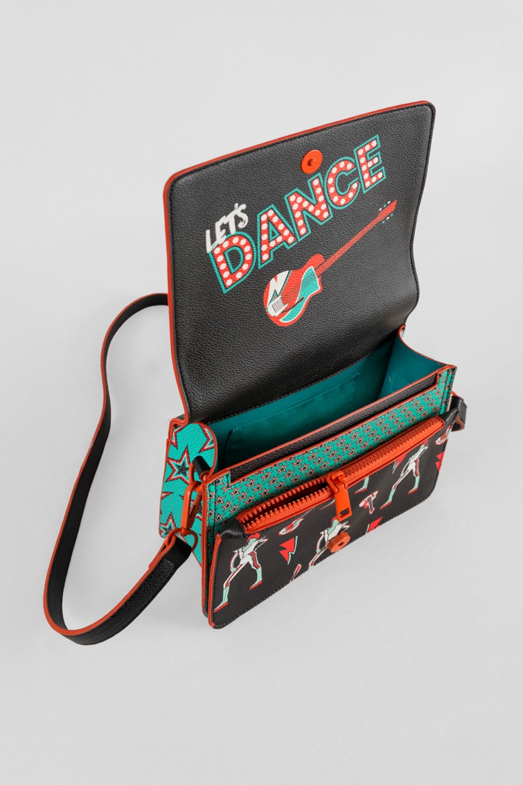 GUÍA DE TALLA BOLSO BANDOLERA TIPO SOBRE NEGRO CON RAYO Y ESTAMPADO DE BOWIE – LOLINA