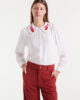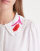 Camisa blanca con bordado tulipán – Compañía Fantástica. Cuello solapa con detalle bordado de tulipán y volantes. Manga larga terminada en puño con botón. Cierre frontal con botones oculto.