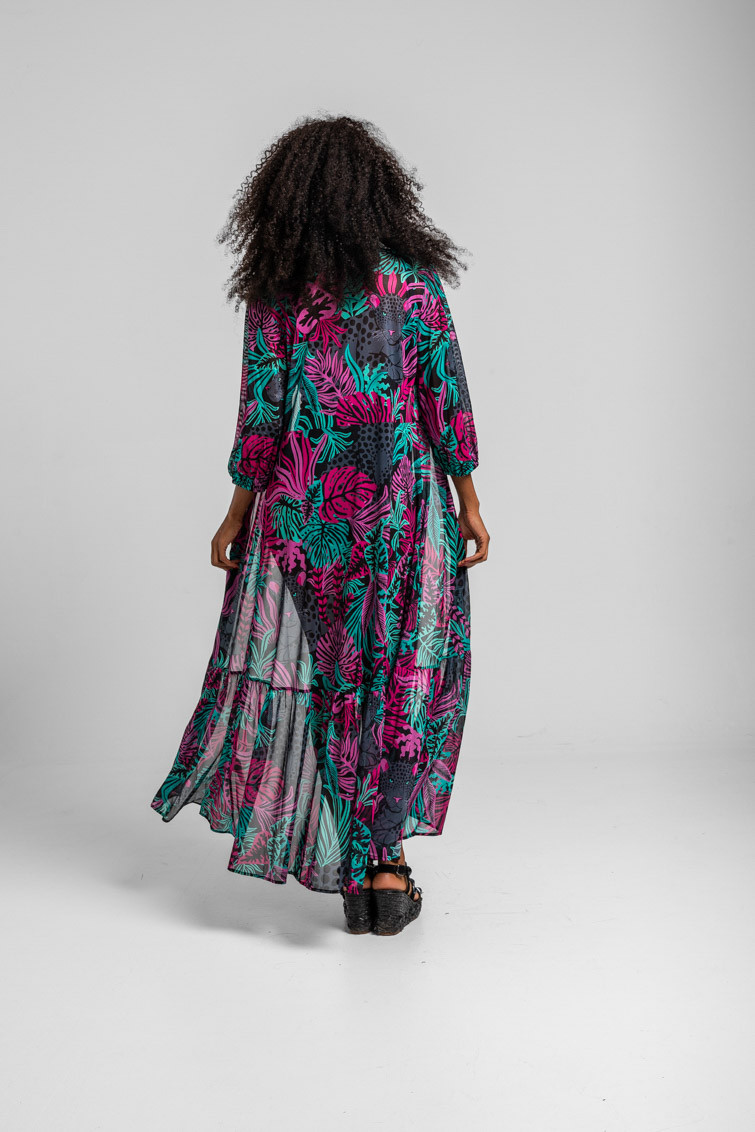 GUÍA DE TALLA CAMISERO FLUIDO DE TUL DE HOJAS Y PANTERAS NOCTURNA – LOLINA