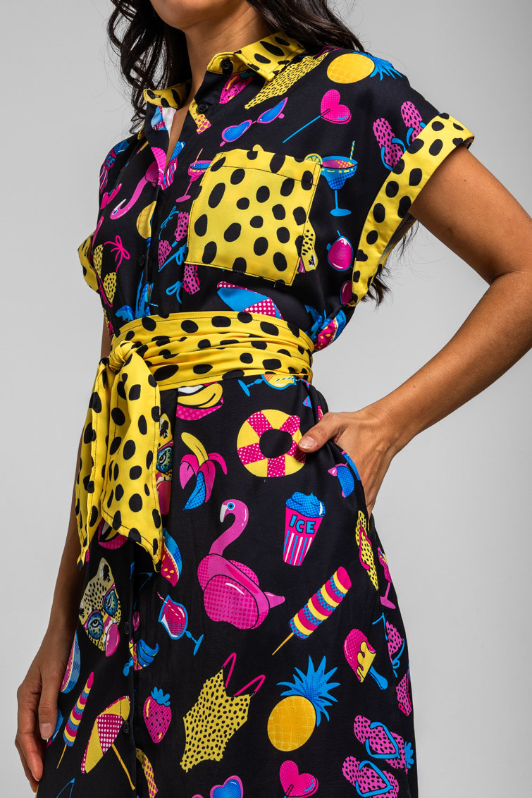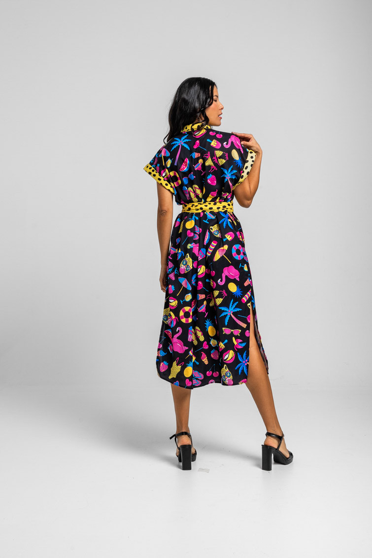 GUÍA DE TALLA CAMISERO MIDI SIN MANGAS NEGRO CON ESTAMPADO VERANIEGO SUMMER TIME – LOLINA