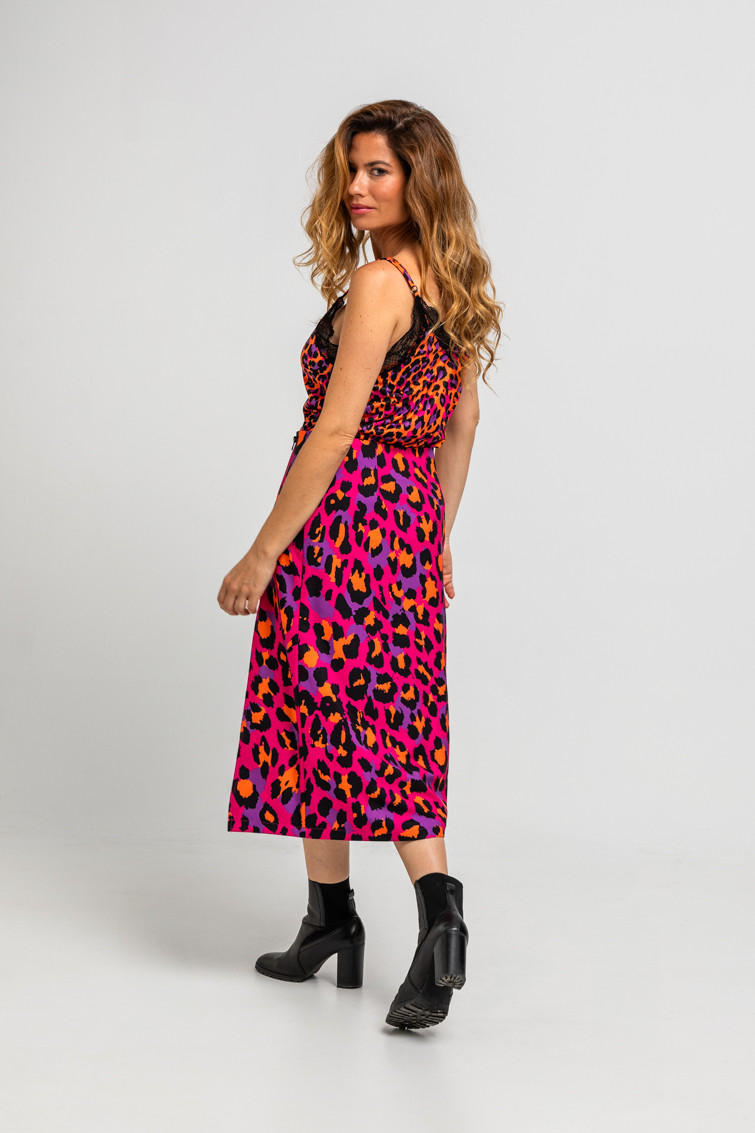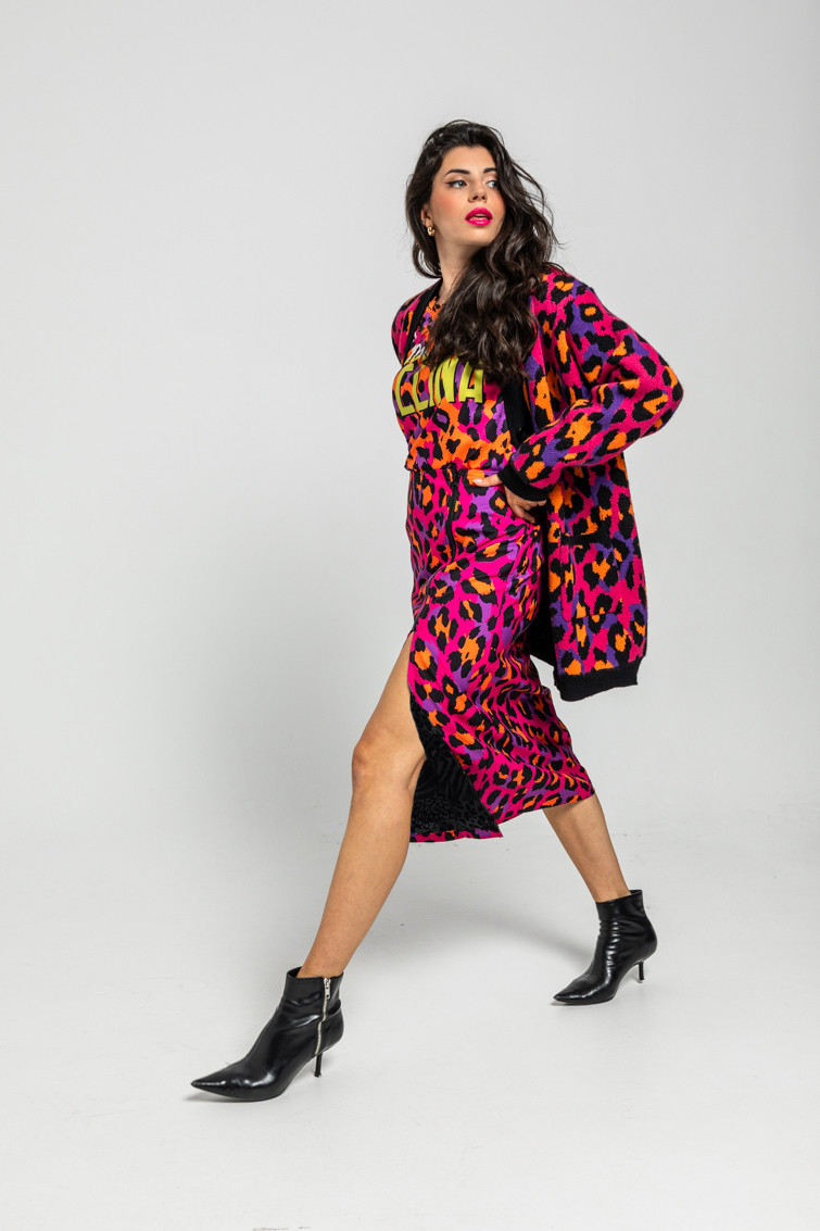 GUÍA DE TALLA FALDA CREMALLERA LATERAL DE ESTAMPADO ANIMAL FUSCIA – LOLINA