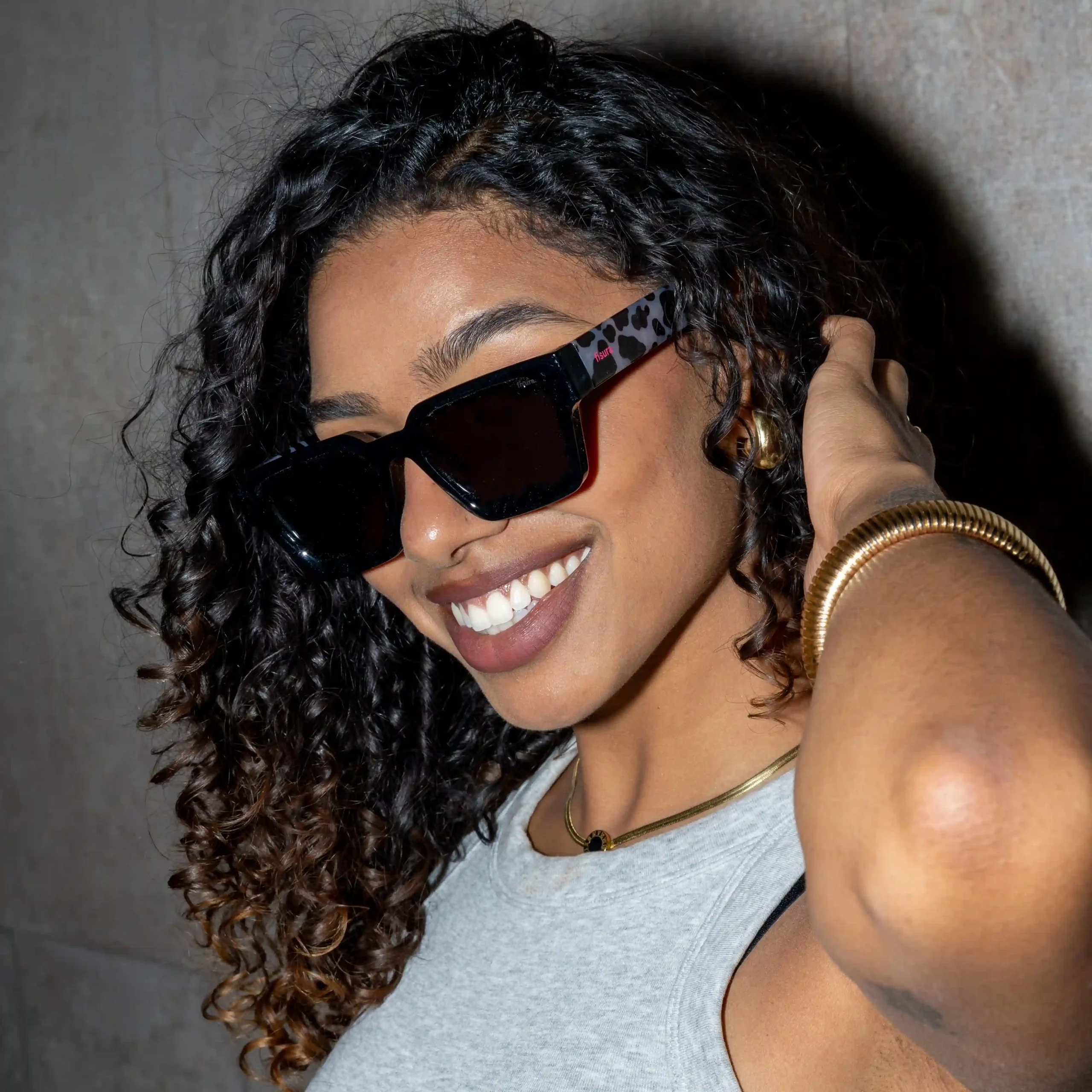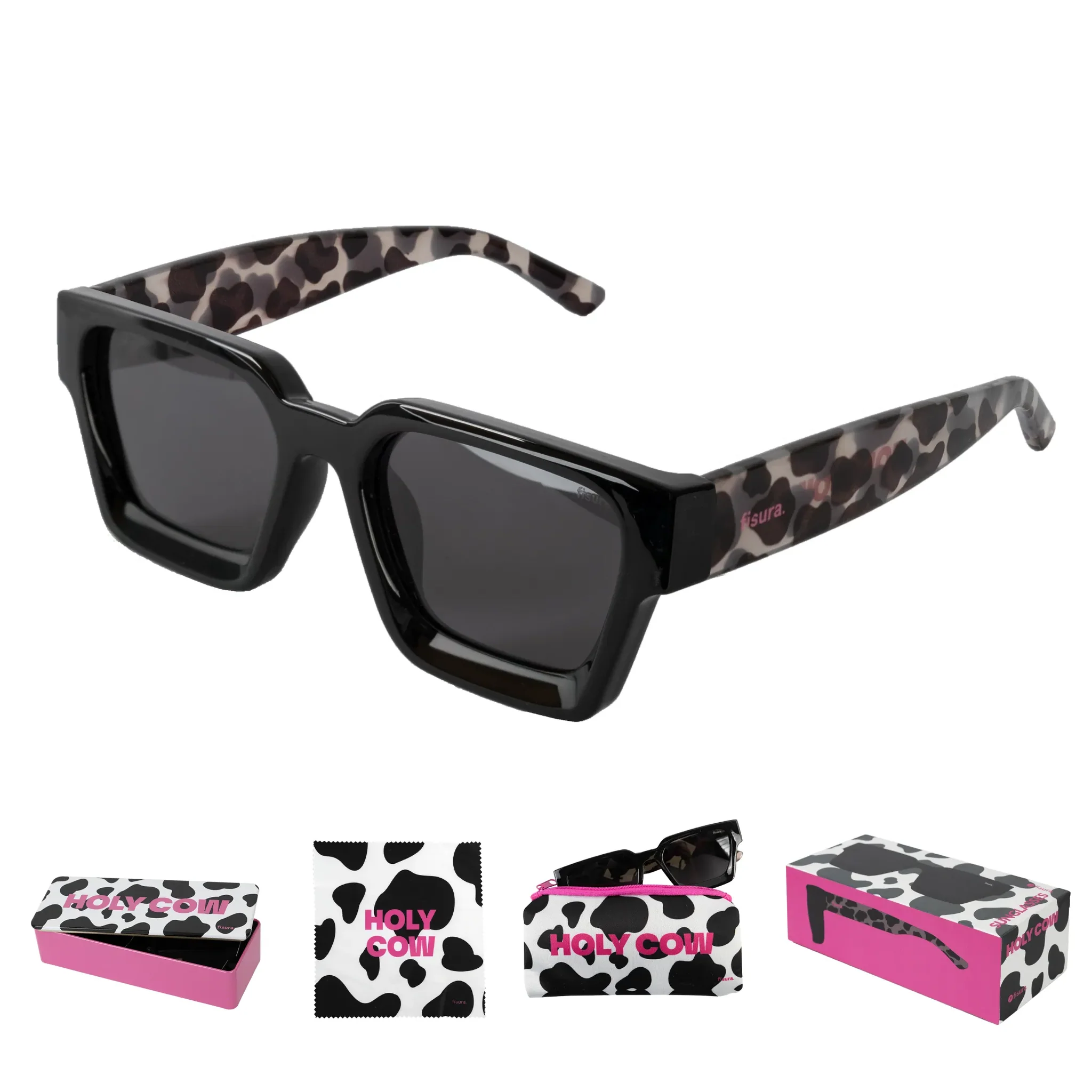 Con su color negro, las patillas con estampado de vaca 🐄 y el mensaje “holy cow” en su interior estas gafas de sol de mujer 🕶️ son el accesorio ideal para darle un toque de personalidad y diversión a tus looks en los días en los que hace muuuuuuucho sol.