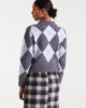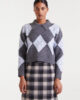 Jersey jacquard punto rombo gris y azul – Compañía Fantástica. Con cuello solapa y manga larga. Hombro ligeramente caído. Detalles bordados en rombo y acabados en rib.