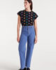 Pantalón vaquero negro con bordado de corazón – Compañía Fantástica. Pantalón vaquero de color negro en tejido de denim elástico. Con tiro alto y pernera recta.Cierre frontal con cremallera y botón. Bolsillos laterales. Detalle bordado de corazones en bolsillos posteriores.