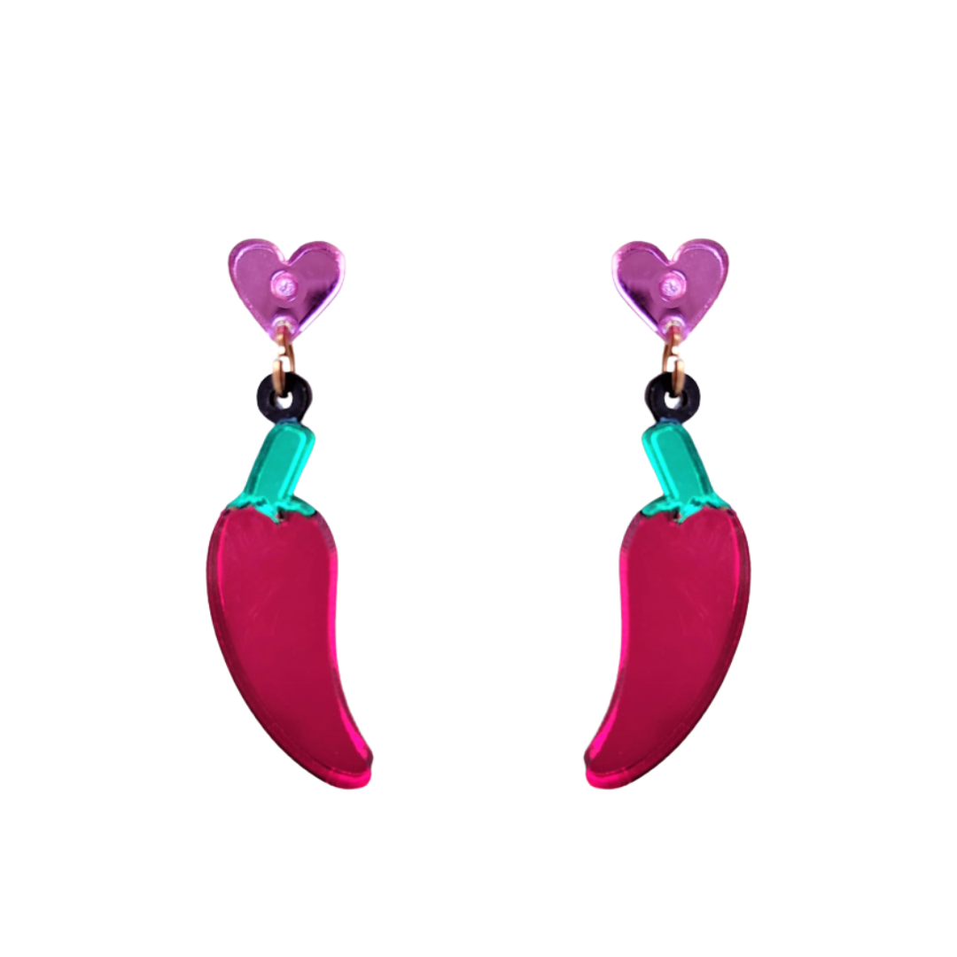 Pendiente metacrilato mini GUINDILLA . Realizados a un tamaño de 4 cm aprox .