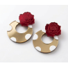 Pendientes flamenca metacrilato con lunares y rosa roja
