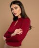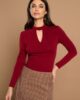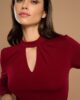 Top Cherry Maresca Minueto. Camiseta con cuello redondo estilo choker y abertura en escote en pico. Manga larga. Tejido elástico. Color burdeos. Cierre en espalda con cremallera oculta en costura.