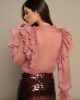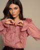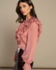 Top Ninetta Minueto. Blusa de cuello redondo y manga larga. Volantes en frontales y hombros. Tejido vaporoso. Cierre con botones frontales y lazo en cuello.