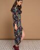 Vestido Animale Minueto. Vestido midi de cuello redondo y manga larga. Estampado animal print. Falda con fruncido y abertura en lateral. Tejido elástico. Forro interior elástico. Cierre con cremallera lateral izquierda oculta en costura.