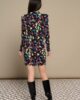 Vestido Greta Minueto. Vestido corto de cuello redondo y manga larga con hombreras. Estampado animal print. Falda efecto cruzado. Tejido elástico. Forro interior elástico.