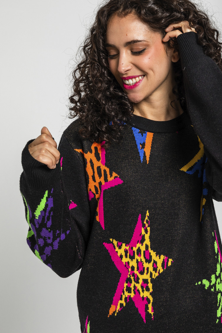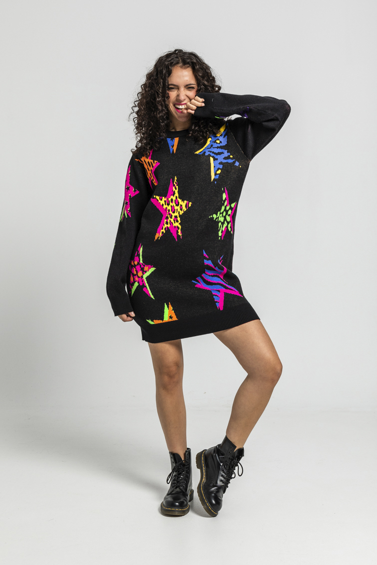 GUÍA DE TALLA VESTIDO PUNTO TEJIDO DE ESTAMPADO DE ESTRELLAS CON ANIMAL PRINT – LOLINA