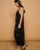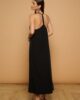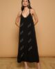 Vestido Thunder Minueto. Vestido largo de escote en pico y tirantes finos. Detalle de aplicación de tachuelas metálicas en el escote y formando motivos de rayos en la parte frontal. Silueta fluida y holgada. Color negro.